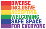 [Rainbow graphic with words DIVERSE INCLUSIVE ACCEPTING WELCOMING SAFE SPACE FOR EVERYONE]