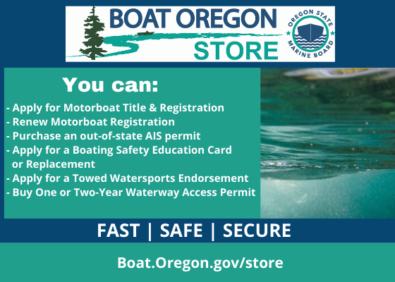 Welcome Aboard to the Marine Board's New Quarterly Boat Oregon Newsletter<https://gcc02.safelinks.protection.outlook.com/?url=https%3A%2F%2Fboat.oregon.gov%2F&data=05%7C01%7CAshley.MASSEY%40boat.oregon.gov%7C4e52a1051f5f4d57107908da85459f2c%7Caa3f6932fa7c47b4a0cea598cad161cf%7C0%7C0%7C637968831999157654%7CUnknown%7CTWFpbGZsb3d8eyJWIjoiMC4wLjAwMDAiLCJQIjoiV2luMzIiLCJBTiI6Ik1haWwiLCJXVCI6Mn0%3D%7C3000%7C%7C%7C&sdata=Ppr5FtH9nrGGNCbqbuDQqxs9E87jGt8DLex%2FPeQWktE%3D&reserved=0>