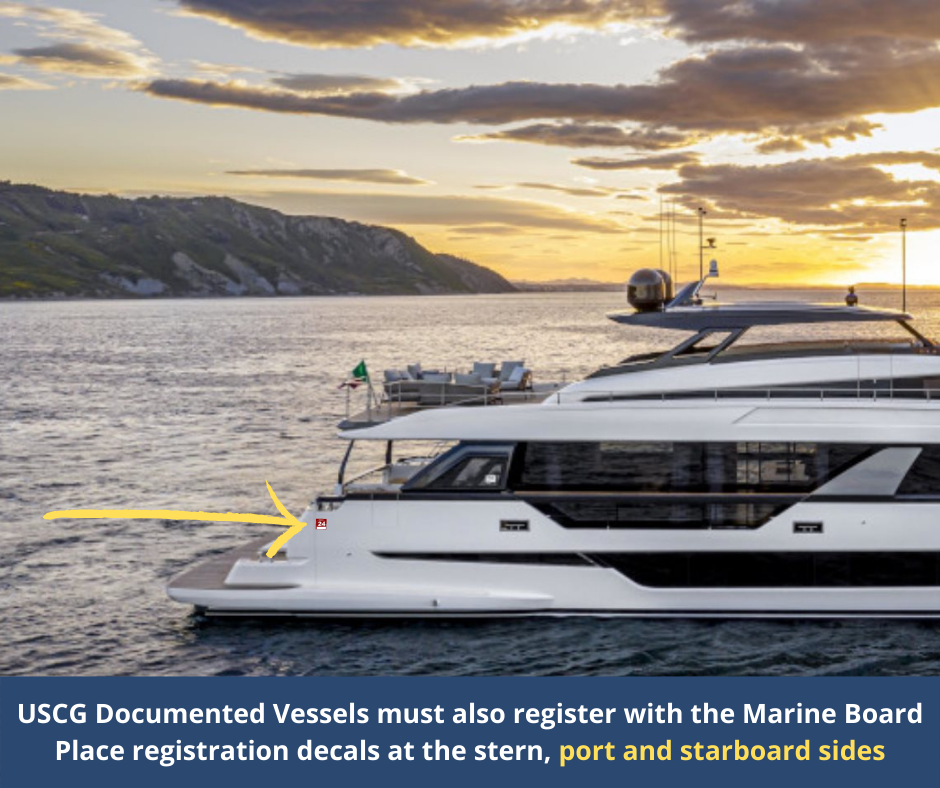 If you've ever strolled down the docks at a marina, you've probably noticed some of the larger boats over 25 feet and 5 net tons have a different number on them. These are Coast Guard "documented vessels." Pleasure vessels that navigate to ports outside the United States must be documented.