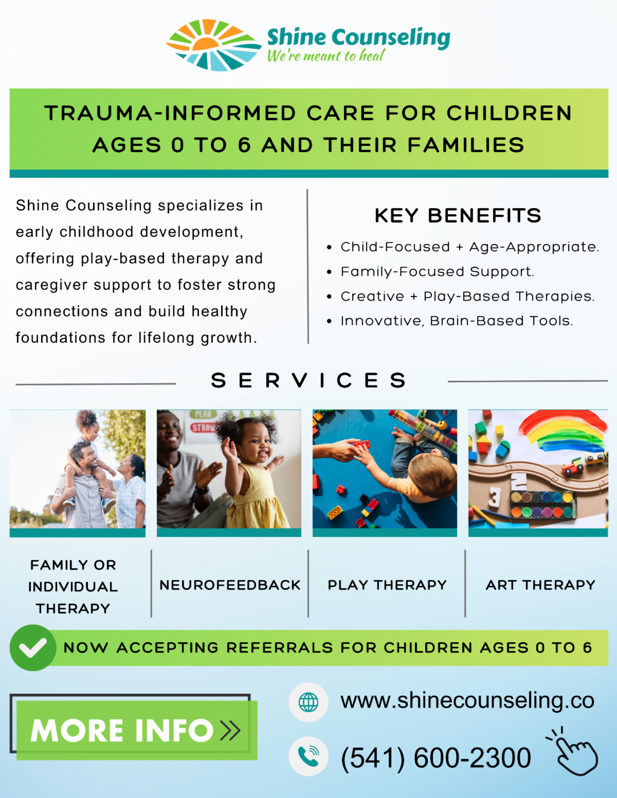 Now accepting referrals for children ages 0 - 6! www.shinecounseling.com<http://www.shinecounseling.com/> and 541-600-2300