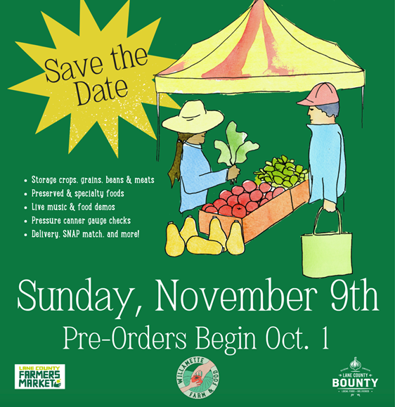 Storage crops, beans, grains & meats, preserved & specialty foods, live music & food demos, pressure canner gauge checks, delivery, SNAP match and more! This year, the event is adding new options like delivery to reach even more folks—especially in rural areas! For the first time, SNAP will be accepted directly online for pre-orders, and our SNAP Match is $150 with no restrictions—meaning SNAP recipients can walk away with $300 worth of nourishing local food for just $150. Read more here<https://www.willamettefarmandfood.org/fill-your-pantry-preorder>!