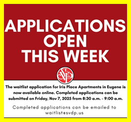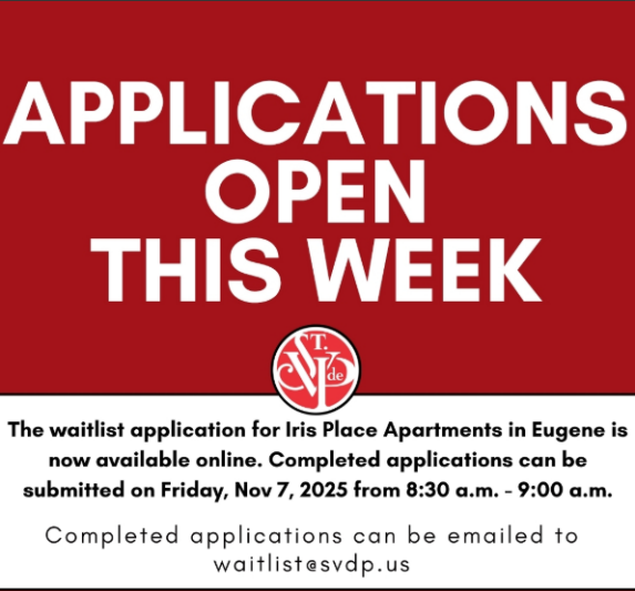Looking for affordable housing in Eugene? The waitlist for Iris Place Apartments will open Friday, November 7, 2025 — but please note, this opportunity is very limited.