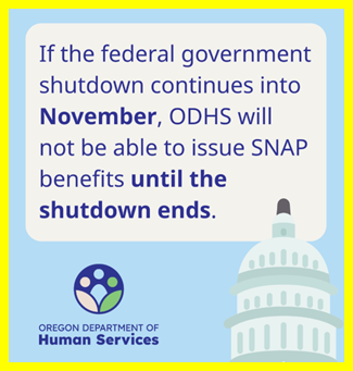 A special Federal Government Shutdown webpage<https://www.oregon.gov/odhs/news/Pages/snap-updates.aspx> has been added to our website.