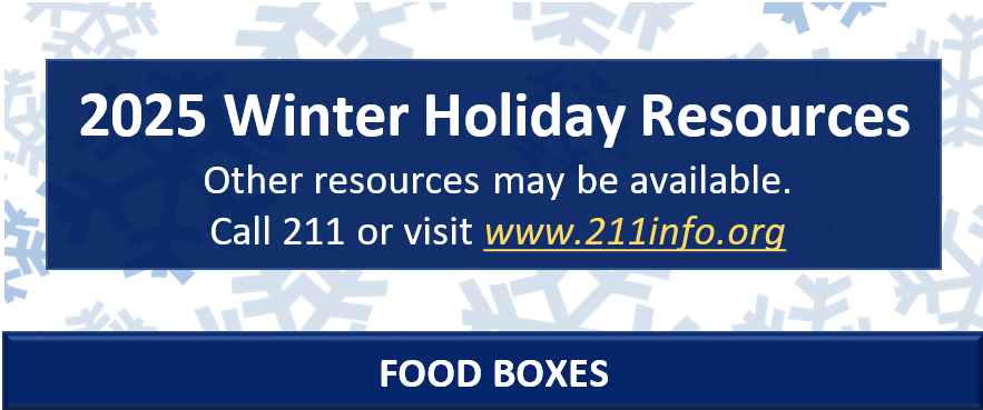 Check out the attached 2025 Holiday Resource List for information about holiday food, hot meals and toys/gifts.