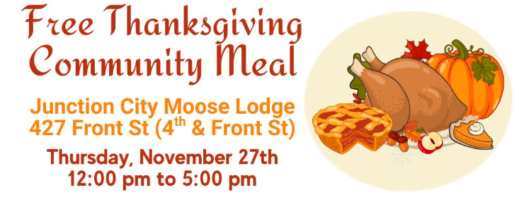 The First Baptist Church of Eugene is hosting a free Thanksgiving Lunch for the community on Thursday, November 28 from 12 p.m. to 2 p.m.