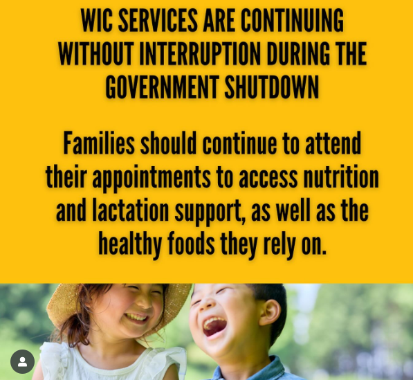 Despite misleading statements, WIC operations, benefits and services will continue during the shutdown.