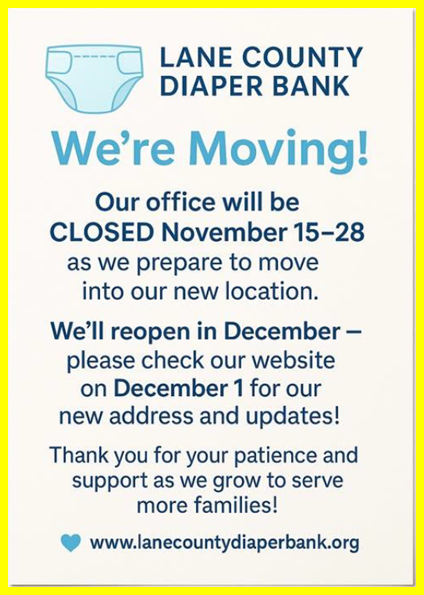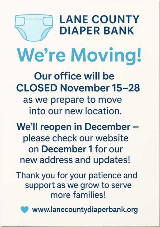 [cid:image020.png at 01DC4815.464B8620]<https://lcdiaperbank.org/?gad_source=1&gad_campaignid=16484434971&gclid=EAIaIQobChMI_qDizObHkAMVyjRECB2b4QKLEAAYASAAEgKpNPD_BwE>LANE COUNTY DIAPER BANK IS MOVING!