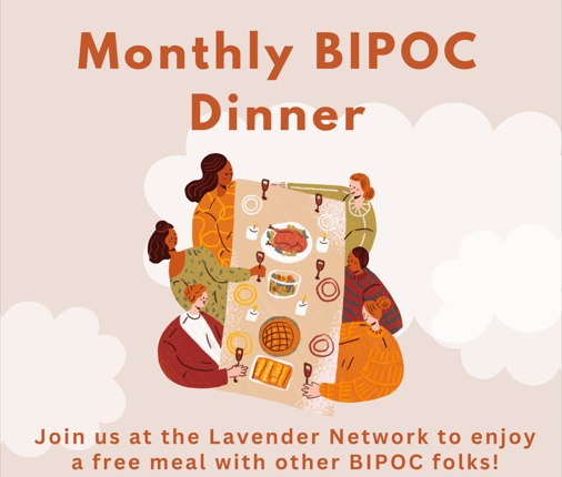 Our intention with these dinners is to create opportunities for BIPOC folks to be in community and share joy—this space is open to anyone who identifies as BIPOC. We ask that when sharing flyers and information about these dinners, folks keep that intention in mind ❤️