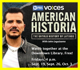 Get together to watch "American Historia: The Untold History of Latinos<https://www.instagram.com/p/DOrhKMmEoP8/?igsh=MWVyZTFkd2hudWdqMQ%3D%3D>" on Fridays at 4 p.m. at the Downtown Library. Join PBS VOCES docuseries creator and host John Leguizamo on a quest to uncover Latino and Latina heroes and their contributions. Leguizamo takes viewers on a captivating journey, delving into both well- and lesser-known stories of Latino history, spanning thousands of years from the Ancient Empires to the present, and shining a light on the rich and often overlooked history of Latinos.
