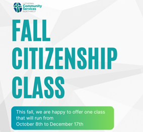 This fall, Lutheran Community Services Northwest is excited to offer a free online citizenship class running from October 8 through December 17. We’d be grateful if you could help us share this opportunity with community members who may benefit.