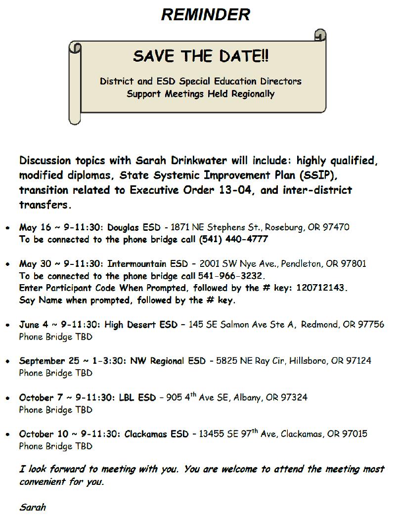 [esd-dir] District and ESD Sped Directors Support Mtgs Held Regionally