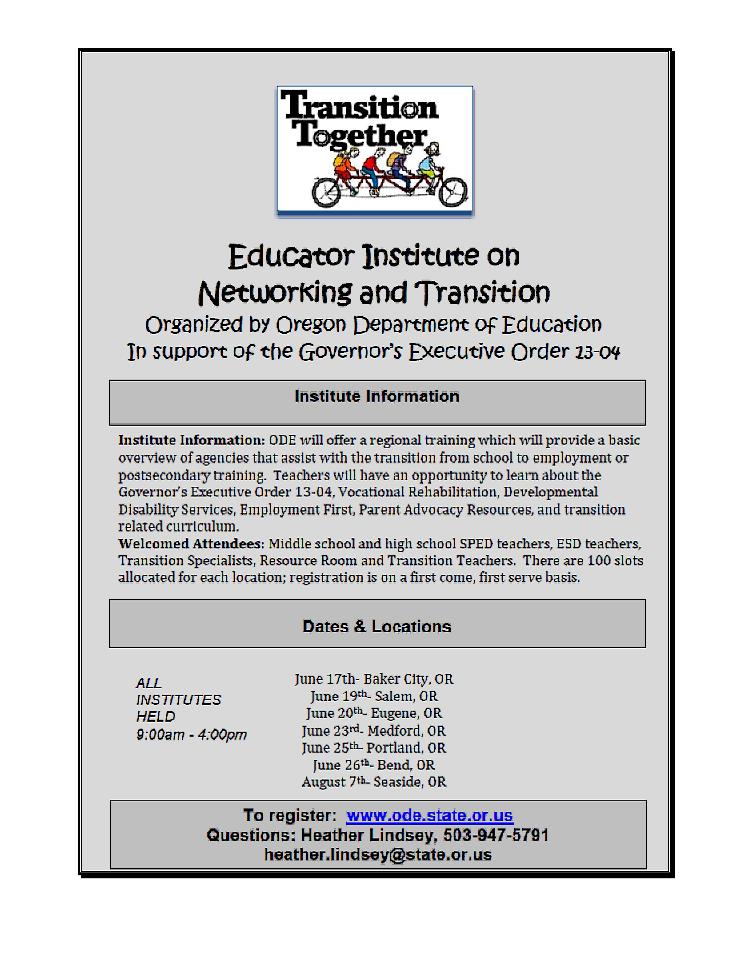 The Oregon Department of Education is an equal opportunity agency and employer.