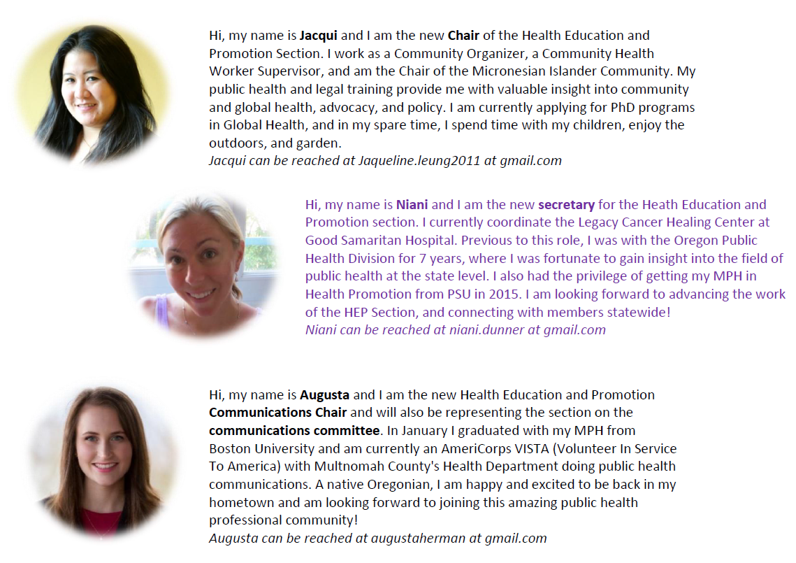 MEET YOUR 2017-2018 OPHA HEALTH EDUCATION & PROMOTION LEADERSHIP TEAM!