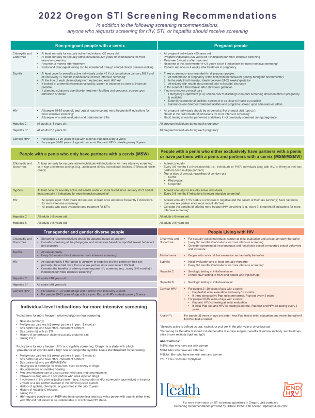 [HIV-STD-Prevention] September SPF: 2022 Oregon STI Screening Recommendations #u#