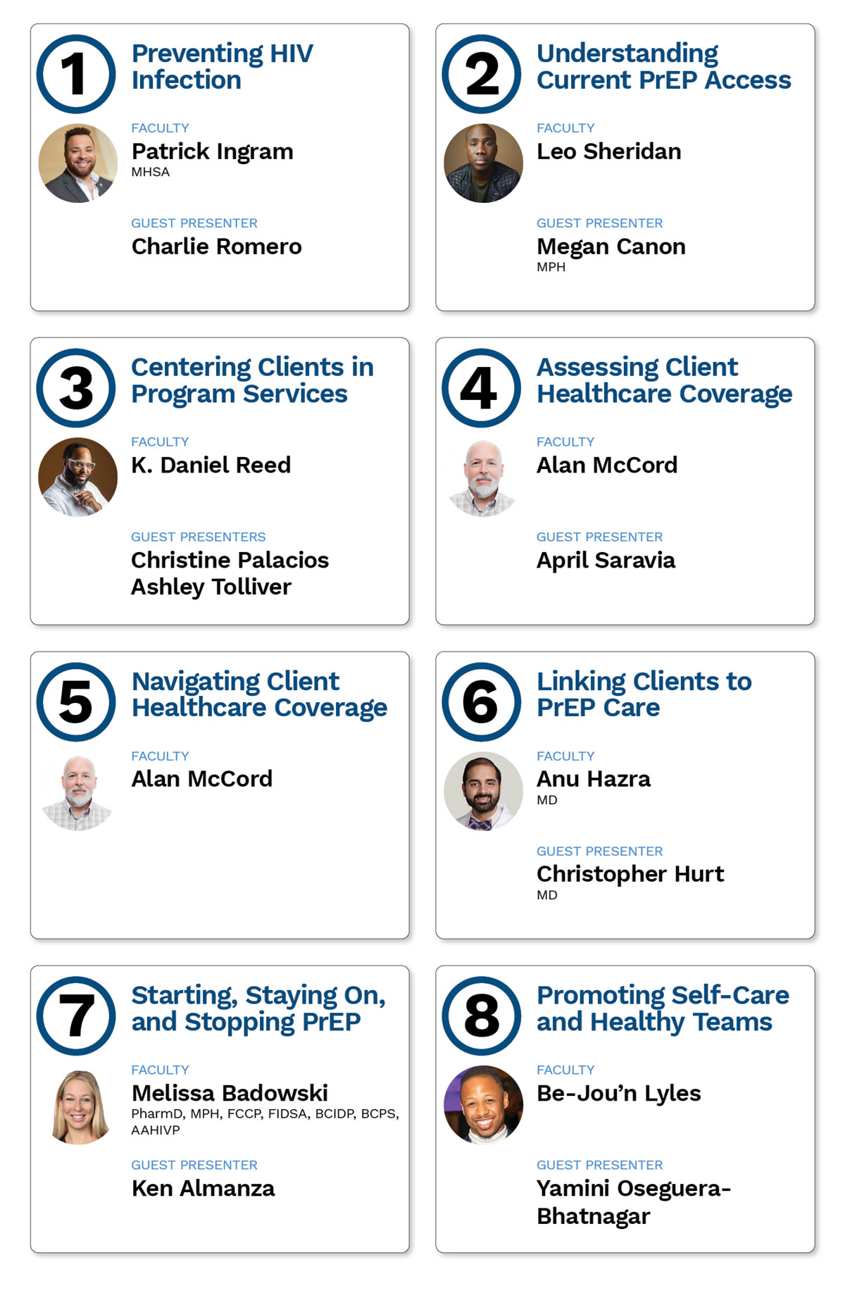 · Develop skills to assist patients in identifying appropriate PrEP, gaining access to PrEP medications, remaining adherent to PrEP, and navigating life changes that require changes in their PrEP care;