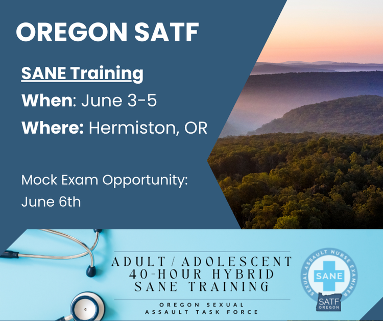 As you may know, Oregon SATF provides training and certification for sexual assault nurse examiners (SANEs) and sexual assault examiners (SAEs)in the state. Anyone who holds one of the following licenses can become a SANE/SAE: Registered Nurse (RN), Nurse Practitioner (NP), Physician Assistant (PA), Medical Doctor (MD), Doctor of Osteopathy (DO), or Naturopathic Doctor (ND) in the state of Oregon.