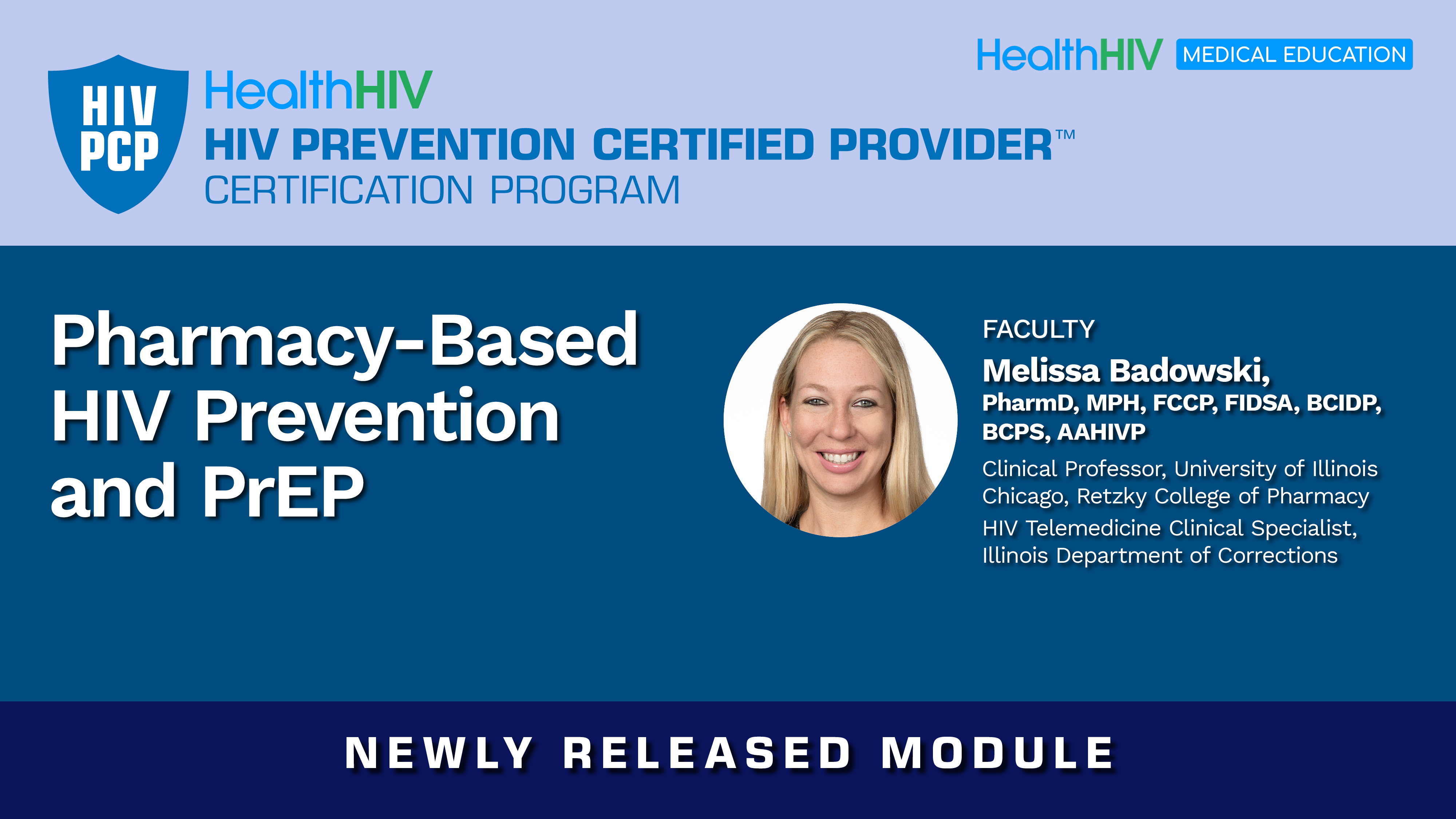 Pharmacists who complete the seven core modules of HealthHIV's HIVPCP Certification Program<https://default.salsalabs.org/T3994a157-7990-4c48-9d31-278f6a5aeb4b/045cefc4-c6fd-48b3-bd60-333f2682ccc6> along with this newly released “Pharmacy-Based HIV Prevention and PrEP” module can earn the HIVPCPRX specialty certification. The HIVPCPRX certification demonstrates knowledge of strategies for HIV prevention counseling, PrEP eligibility screening and adherence support, and the evolving policy landscape of implementing pharmacy-based HIV prevention and collaborative practice models.