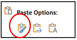 4. You'll find that the clipboard with the paintbrush, will keep the source formatting. You can also use the keyboard shortcut Ctrl + V.