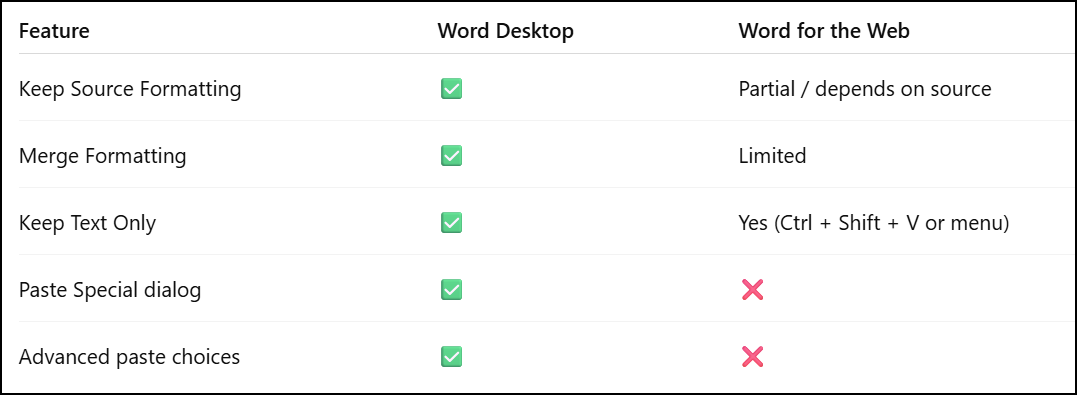 Whether you’re copying from another document, a web page, or a spreadsheet, today’s Office and Google applications give you more control over how you paste your content.