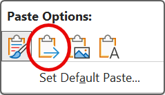 NOTE: Another way to access the different paste options is to use Paste in the Home Ribbon at the top left. Don't click on the icon; choose the down arrow to see your choices.