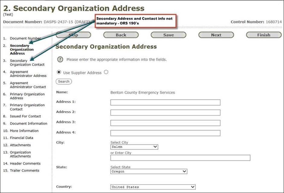 We recently discovered that on ORS190 documents the Secondary Organization's address and Secondary Organization's contact are not required fields. They can be skipped and the integrity check will not catch them, so it will allow the document to be issued without this information.