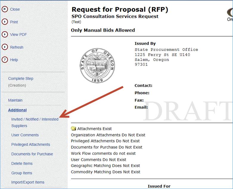 An Opportunity has this tool in the Additional section instead. Buyers do not have to process through the page when using the document wizard to create their document. Instead they have to remember to go to the Additional section if they want to invite or notify suppliers.