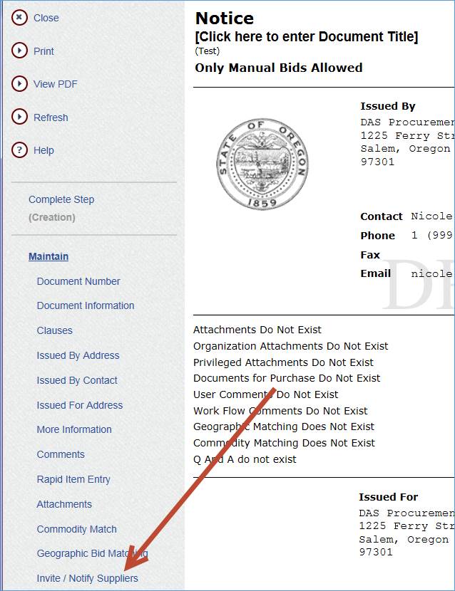 In the upgrade the Notice document type has the Invite/Notify Suppliers option as a part of the Maintain (Document Wizard) area. This would serve as a reminder to buyers as they are doing their document creation to think about whether they want to invite or notify any suppliers. It would be the last screen to show up on the document wizard, right after Geographic Bid Match.
