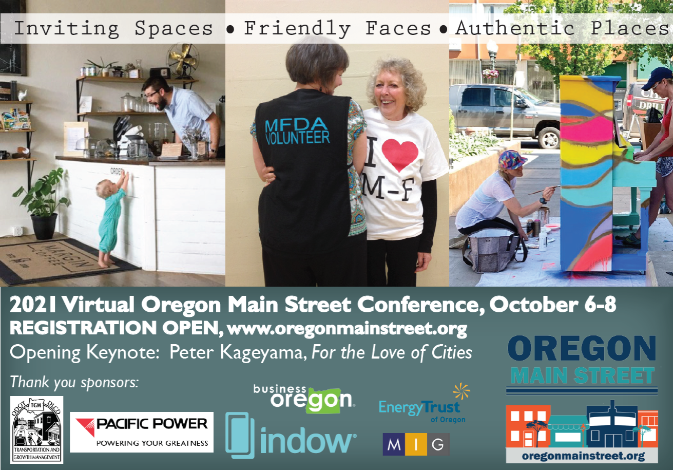 Oregon Main Street Conference, October 6-8 -Click Here to register and for more information<https://www.oregon.gov/oprd/OH/Pages/omsconference.aspx>