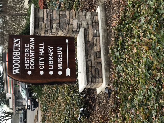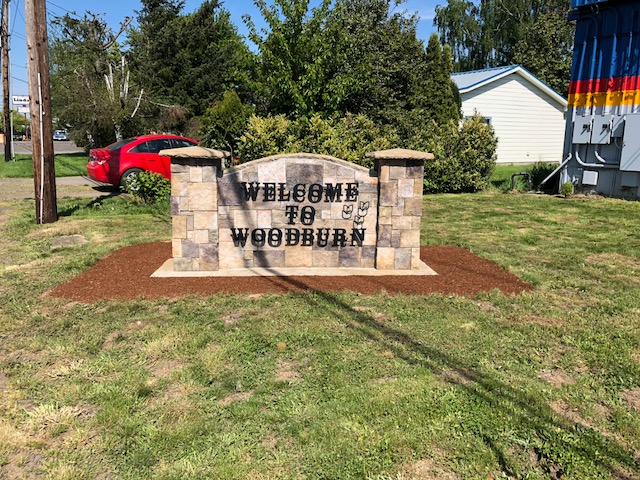 Here are pics of a couple of our Welcome signs and a directional one for Woodburn.