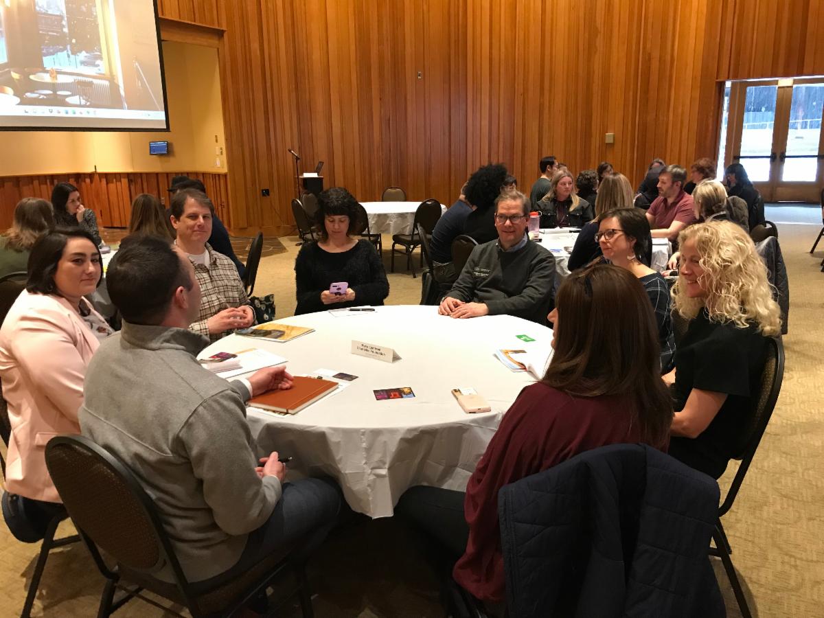 Grant seekers learn about funding opportunities at the Portland Conversations with Funders event at the World Forestry Center.