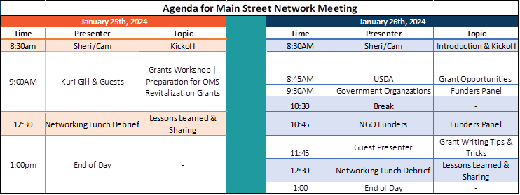 The time has come to register<https://us06web.zoom.us/meeting/register/tZYsde2rqz4tHNHheNHKMCzXh6x0OBQOb9kU> for the January network meeting. Registration is required for all Affiliated, Designated, and Accredited communities. These Main Street Track communities are expected to have a delegate from their organization attend these quarterly meetings. You’ll find the logistics on the meeting below.