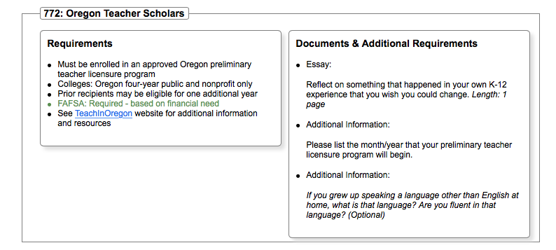 Applications Now Open for Grants and Scholarships <https://www.oregon.gov/ode/about-us/Pages/Education%20Update%20pages/November-2017-Education-Update.aspx>