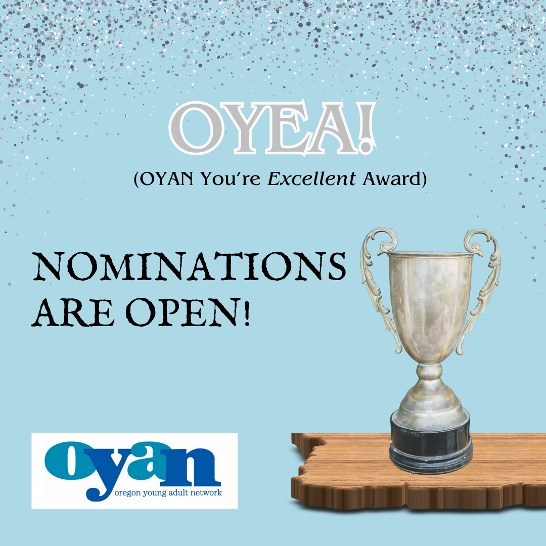 OYAN invites you to recognize and support the work that a colleague, partner organization, library, program, or initiative has done by nominating them for the OYEA! (OYAN You're Excellent Award). Preference shall be given to nominees who are supported by a letter of recommendation written and submitted by a teen or teens. Entry deadline is Friday, March 13th, 2026. Send nominations via email to: oyan at olaweb.org