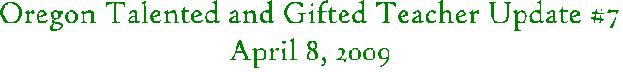 ****Disclaimer--The materials contained in the Oregon Talented and Gifted Teacher Update produced by