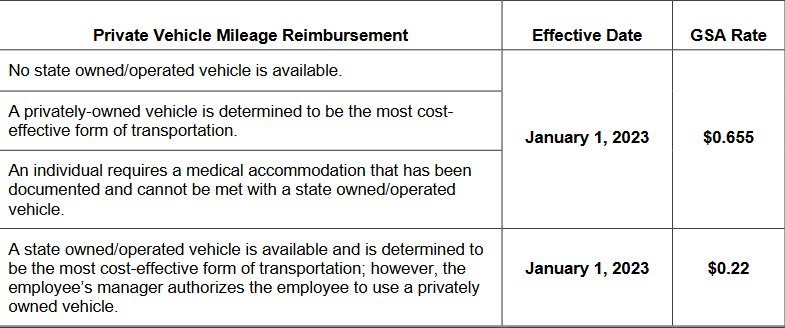 OAM 40.10.00 Statewide Travel Policy has been updated to reflect the 2023 auto mileage rates which are as follows: